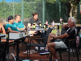 Wie schon in den vergangenen Jahren war auch bei der 6. Auflage unseres Hobbyturniers auf eines Verlass: den Regen. Das tat der guten Stimmung unter den Teilnehmer*innen, Helfer*innen und Zuschauer*innen jedoch keinen Abbruch. Nach planmäßigem Beginn der Vorrundenspiele legte ein Wolkenbruch den Spielbetrieb für knapp zwei Stunden lahm, was den Verkauf von Wurstsalat, Bier und Sekt-Schorle deutlich ankurbelte. Anschließend wurden die Plätze mit vereinten Kräften weitestgehend vom Wasser befreit, sodass die Rundenspiele der Herrendoppel doch noch durchgeführt werden konnten. Die Halbfinals und das Endspiel fielen leider den rutschigen Platzverhältnissen zum Opfer. In der Damenkonkurrenz verzichteten die Teilnehmerinnen daher auf die Austragung der letzten drei Begegnungen und wurden mit je zwei gespielten Matches gewertet. Das Team »Ojeeeh« in der Besetzung Claudia Knauer/Manuela Lebküchner verteidigte seinen im Vorjahr errungenen Titel erfolgreich. Überlegene Sieger beim Herrenwettbewerb wurden die »Doppelfehler« Andreas Gölz und Michael Klaiber, die sämtliche Partien für sich entschieden.